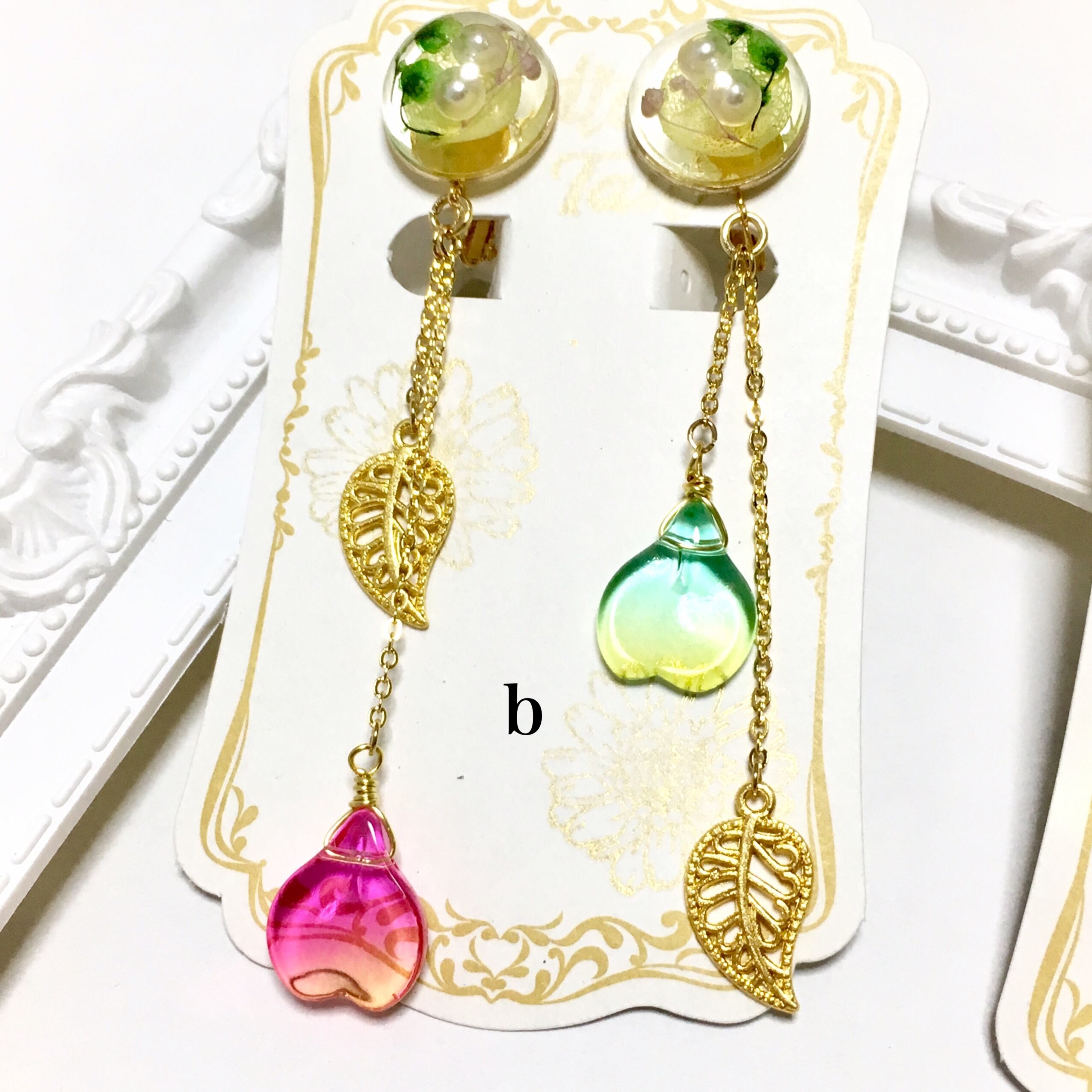 花びらと葉っぱが揺れるイヤリング