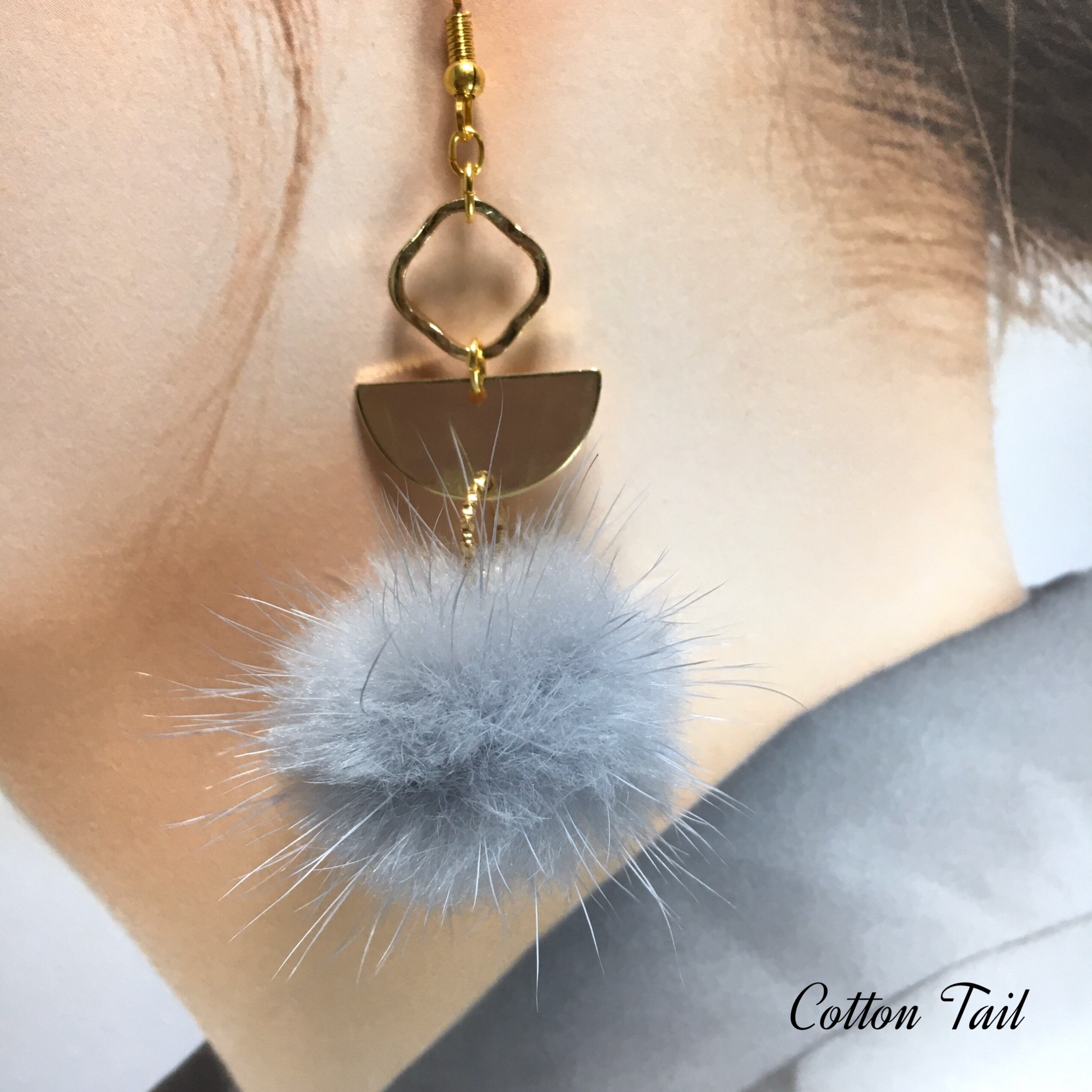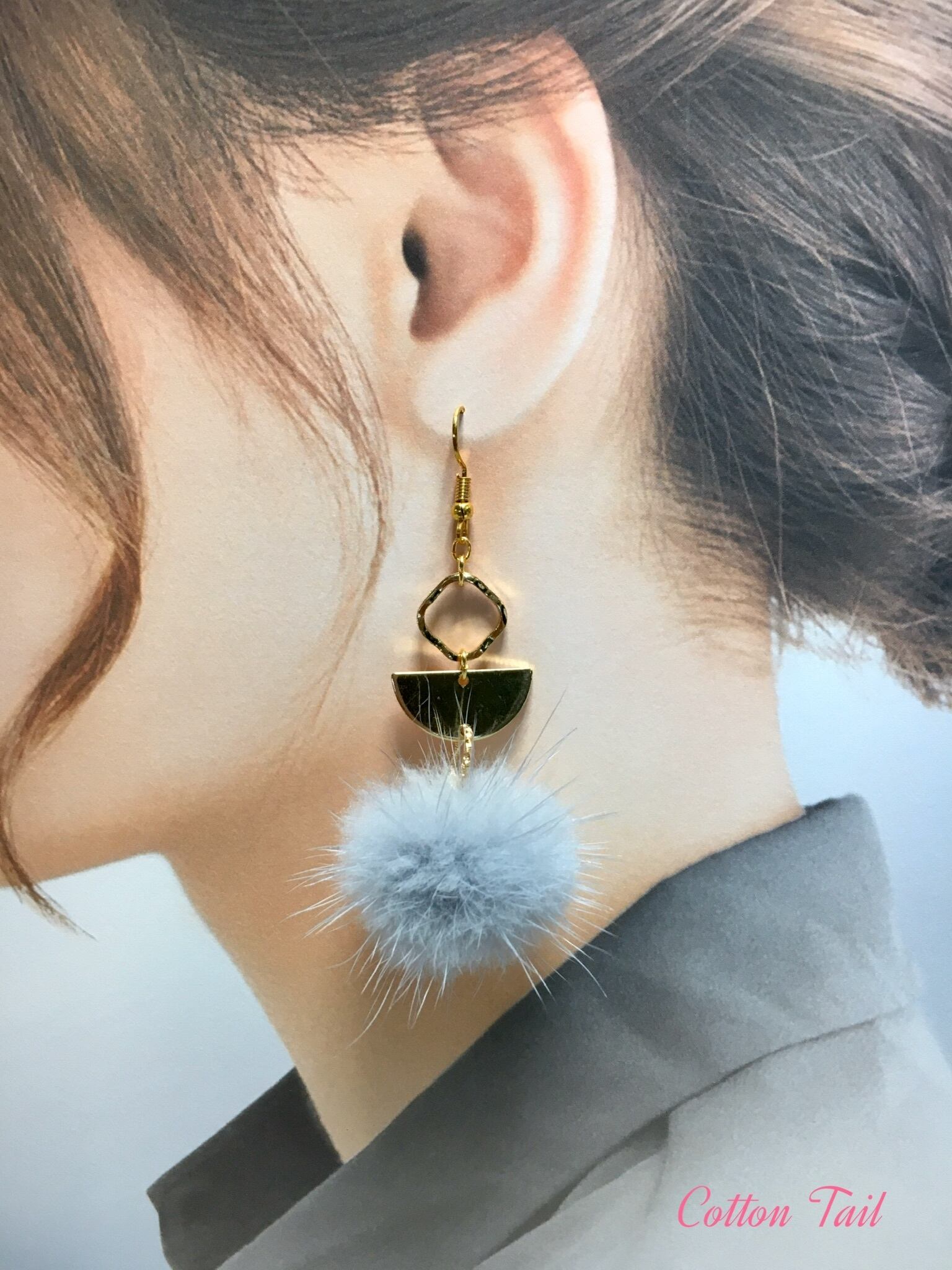 グレーのミンクファー と半円プレートを組み合わせたイヤリングです。