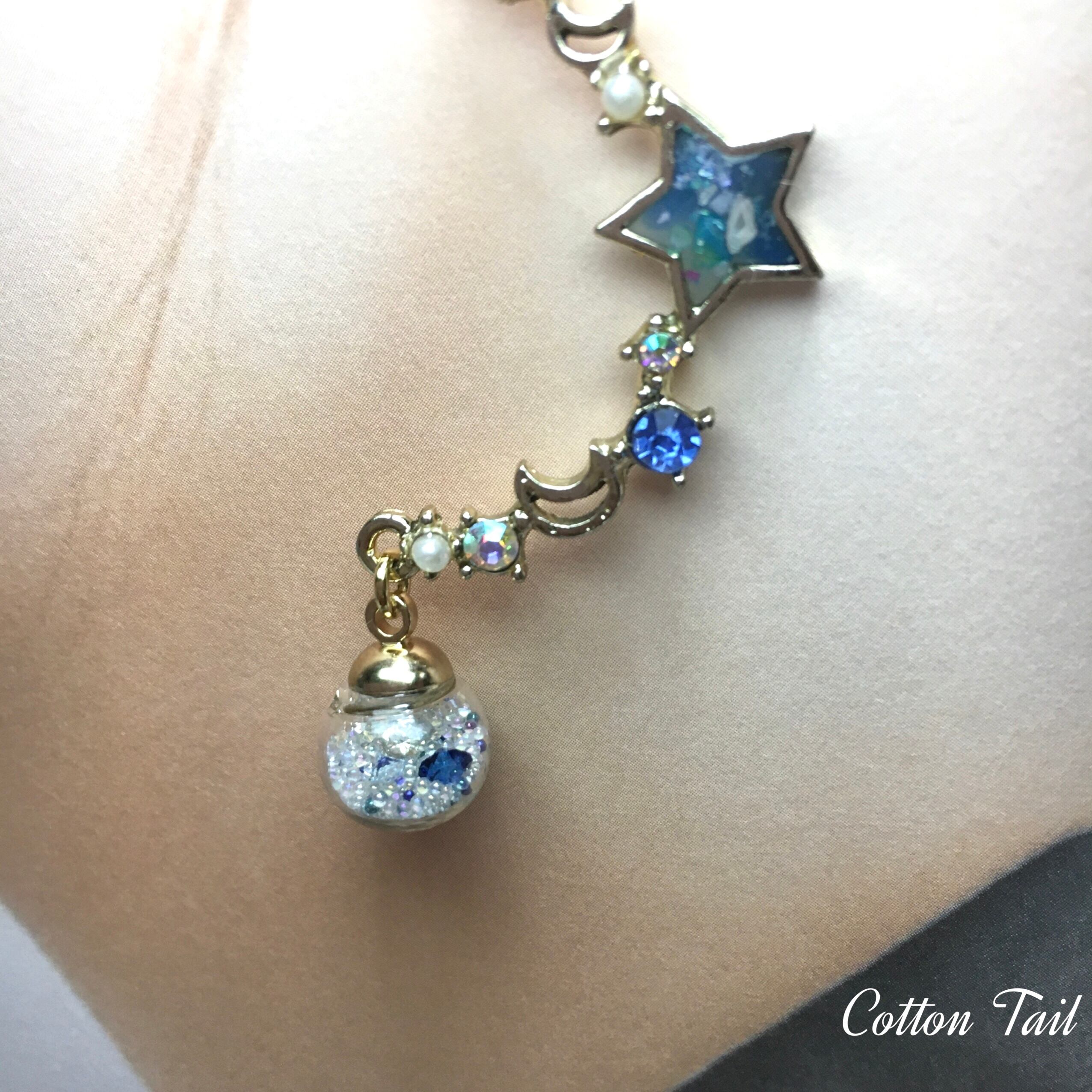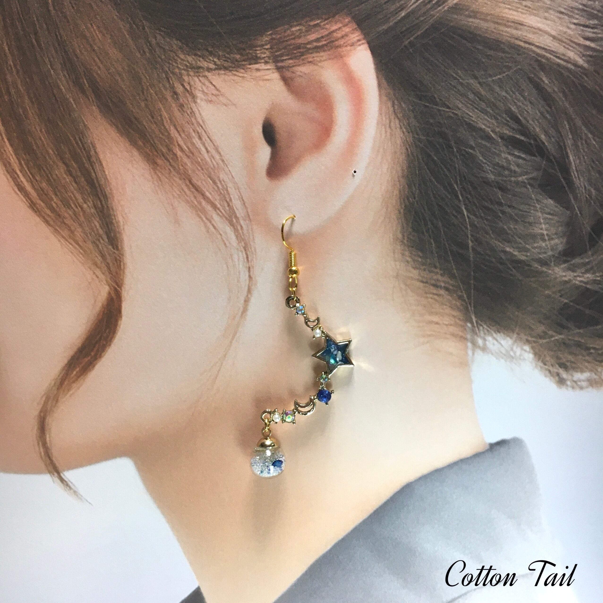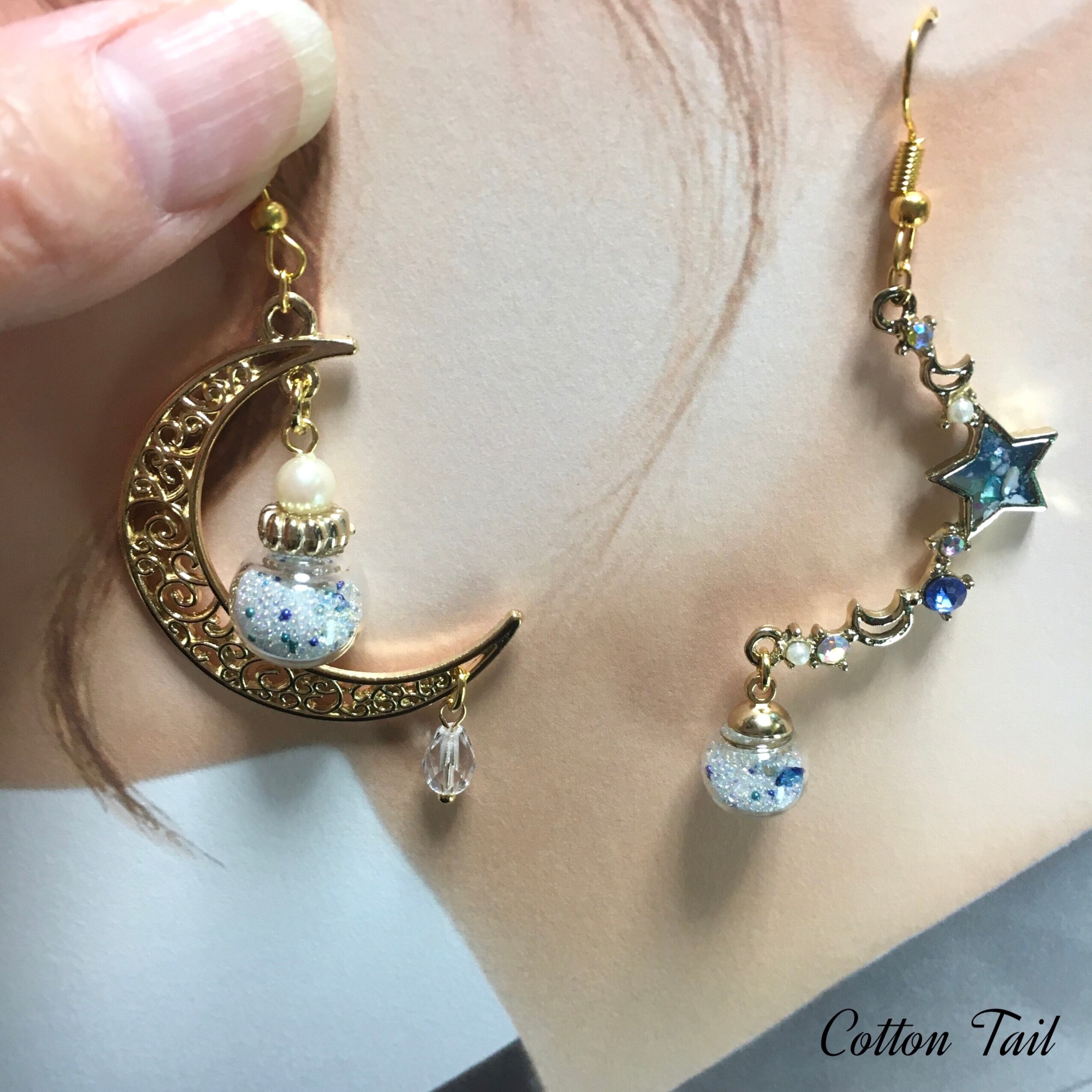お月様と星のチャームとガラスドームを合わせたイヤリングです。