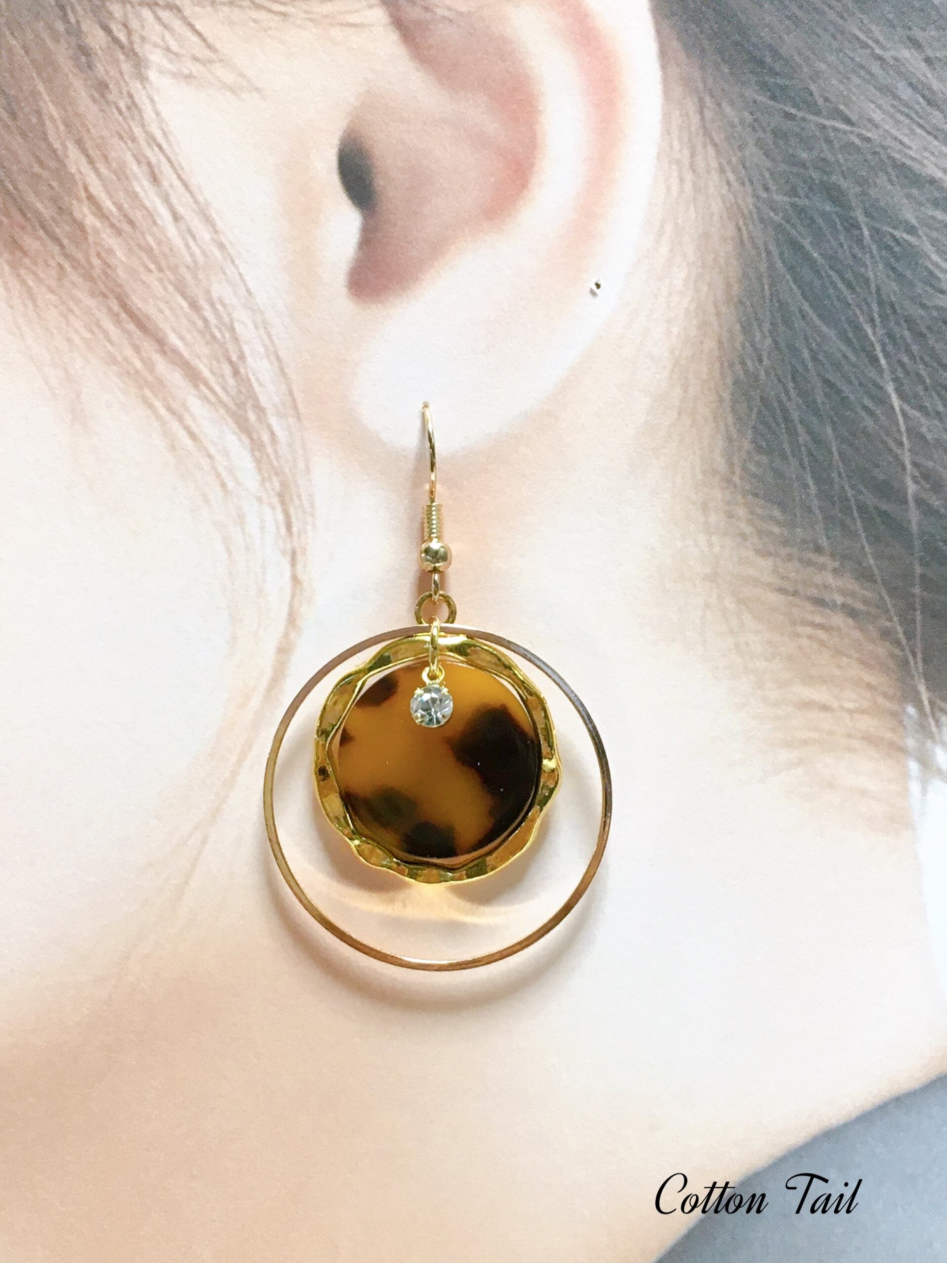 リングとべっ甲風パーツを組み合わせてイヤリングにしました。