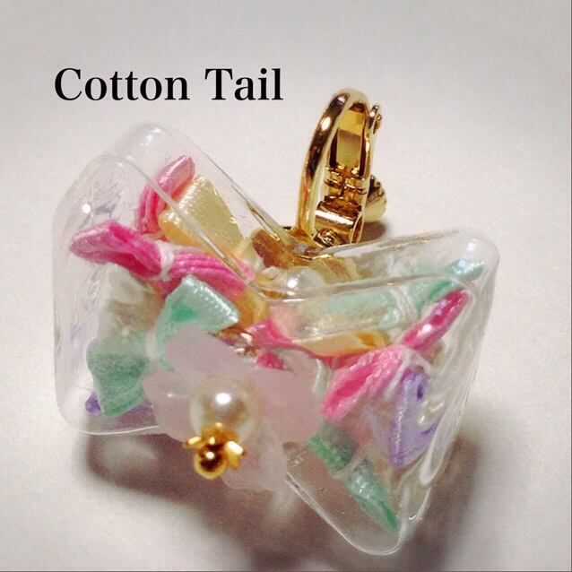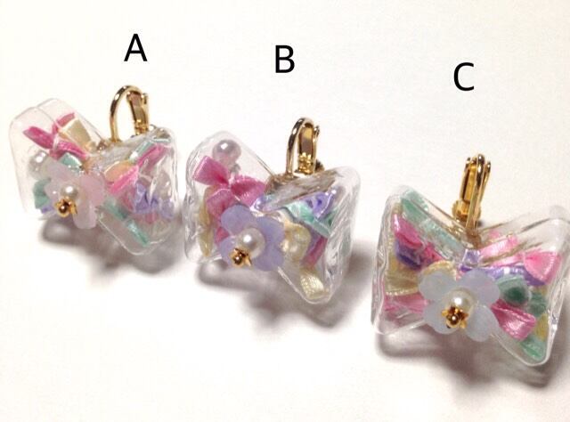 リボン型ガラスドームのイヤリング