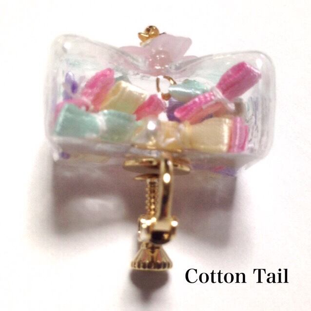 リボン型のガラスドームに小さなリボンを詰めました。