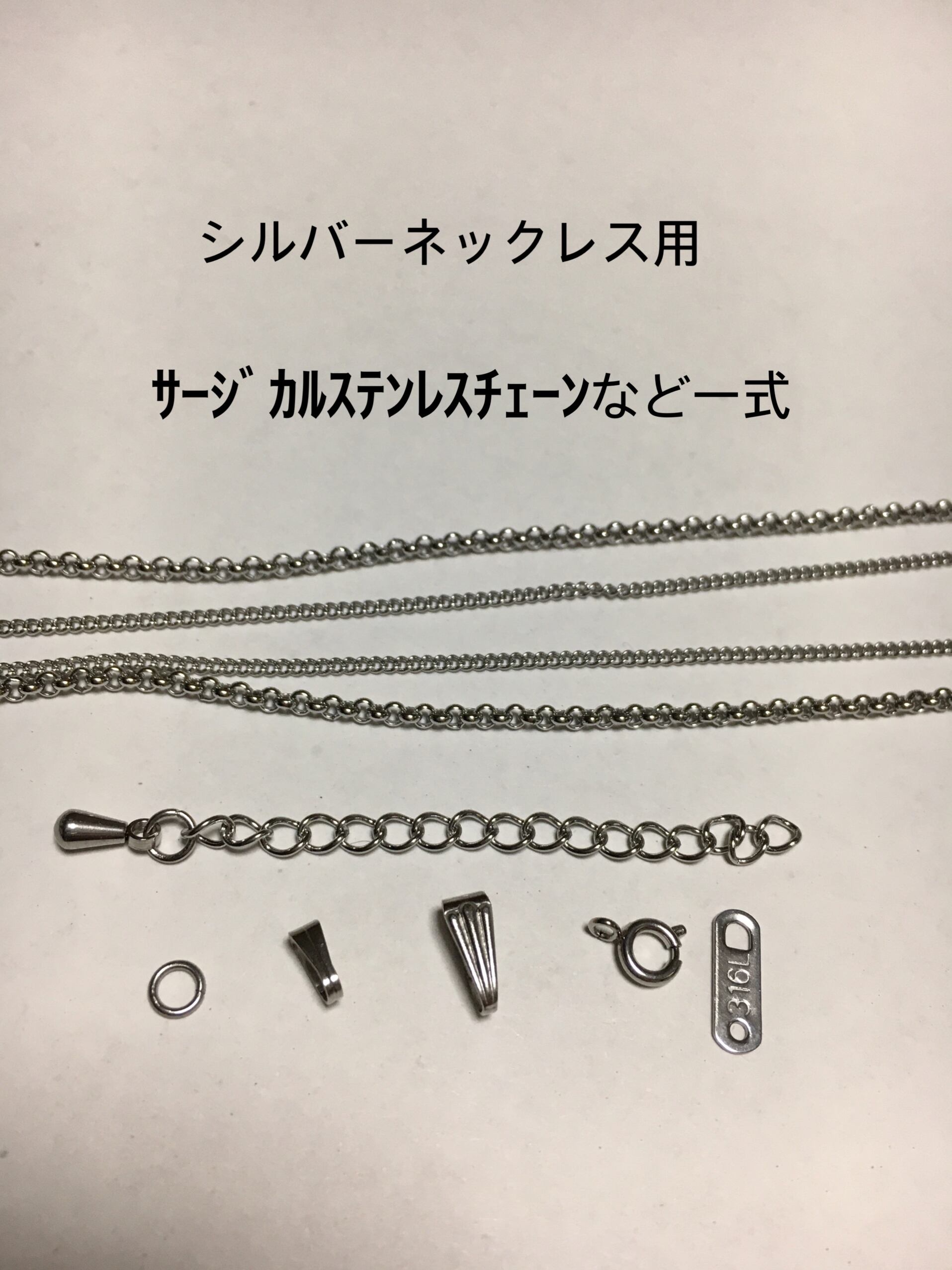 チェーンなど金属アレルギー対応にサージカルステンレスで一式用意しておりますので、オプション欄にてお選びくださいませ。
