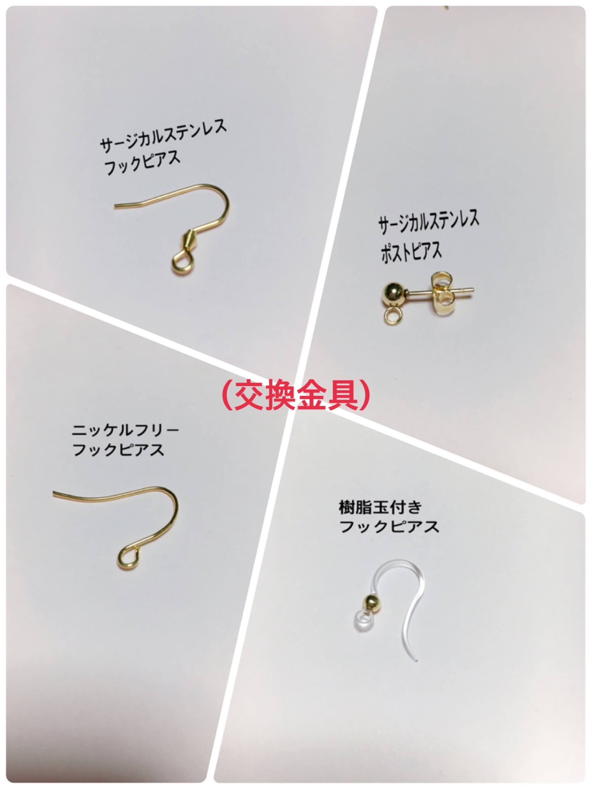 他のパーツや金属アレルギー対応パーツにも変更出来ますのでオプション欄にてお選びくださいませ。