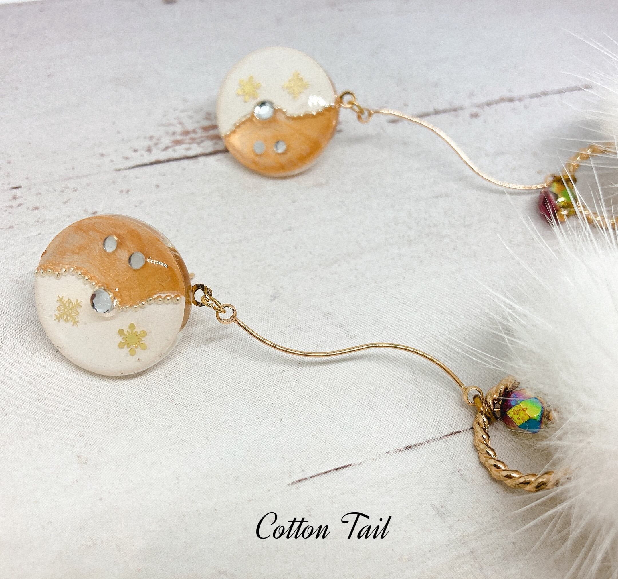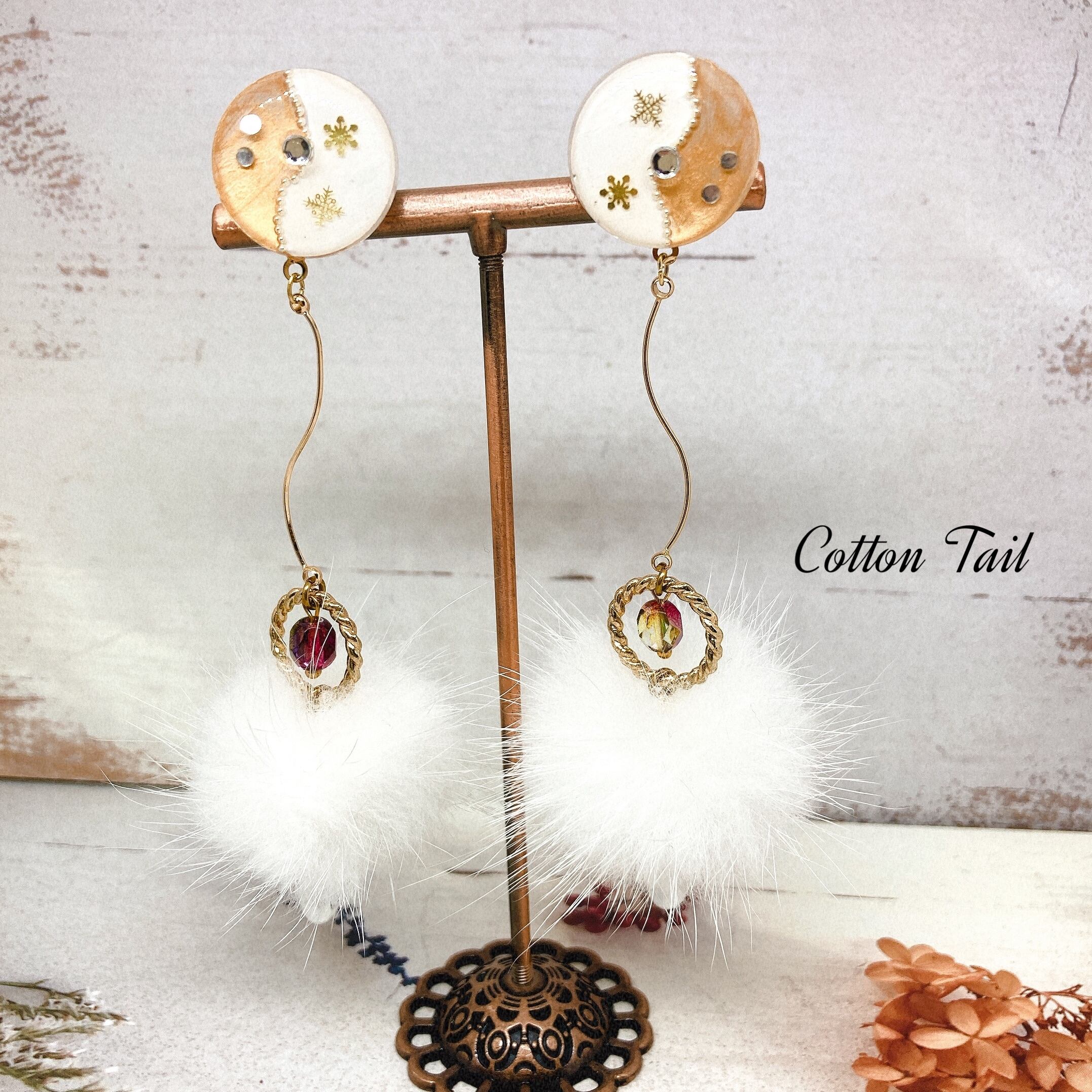 こちらは、レジンで直径2cm のカボションを作ったものと、ミンクファーを合わせたイヤリングになります。
