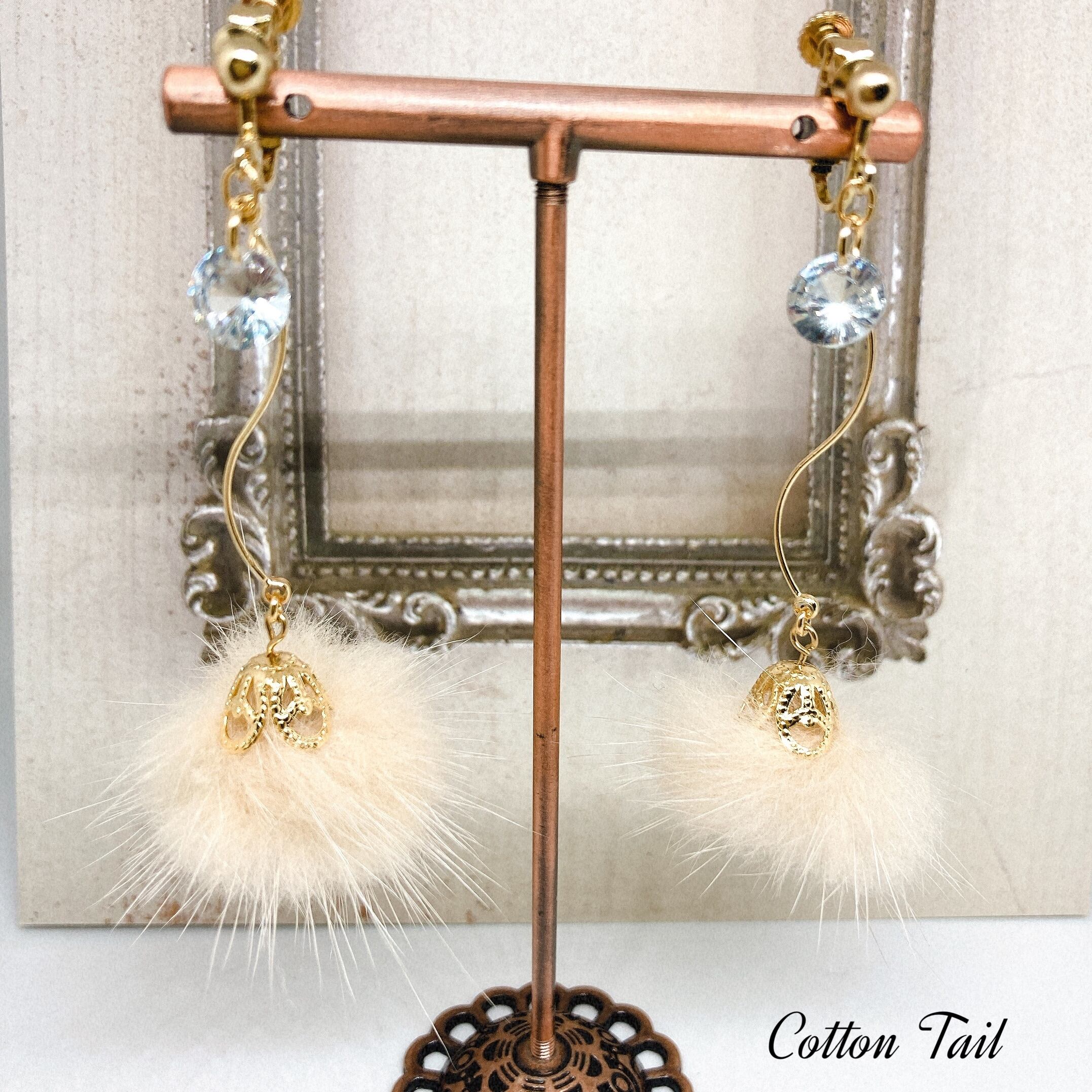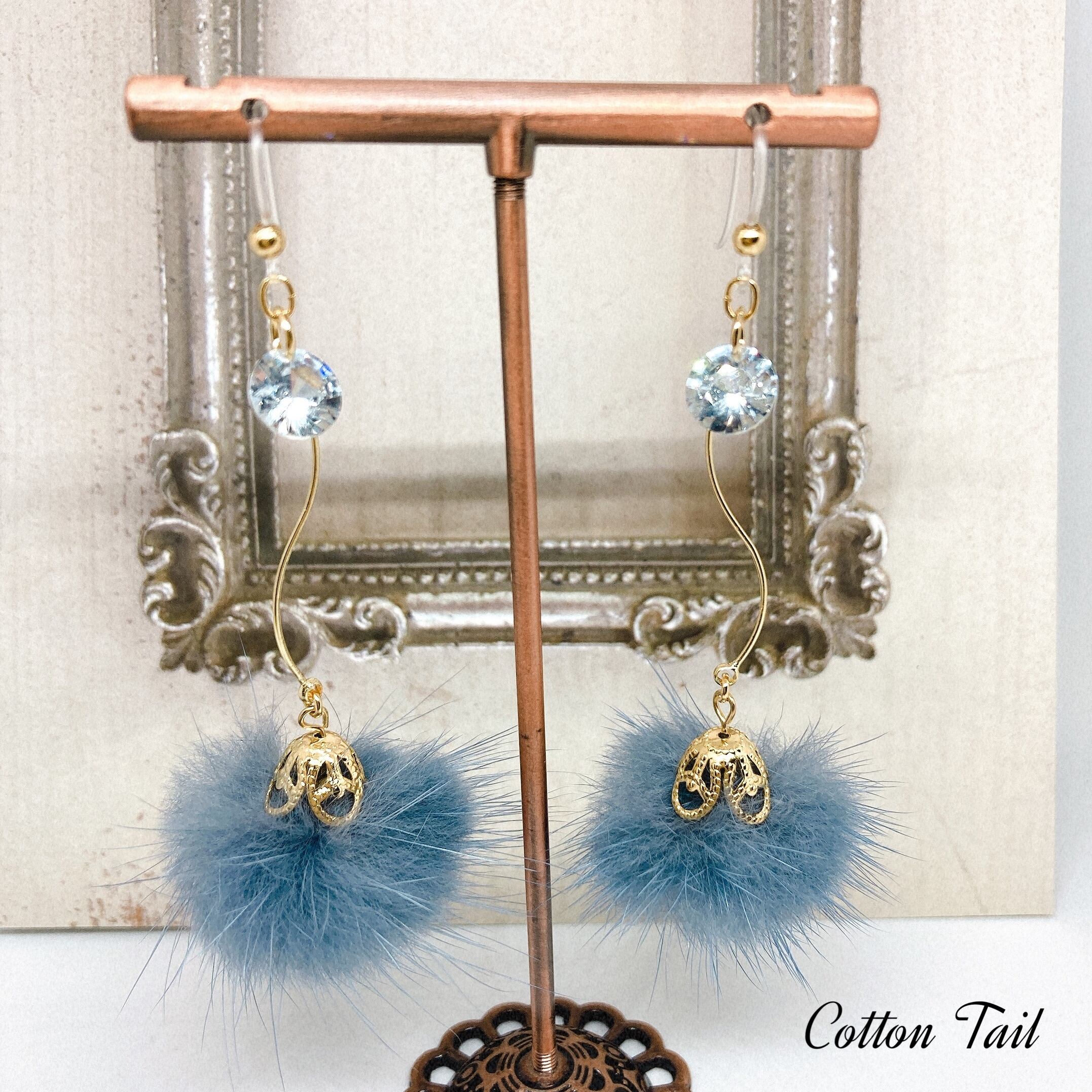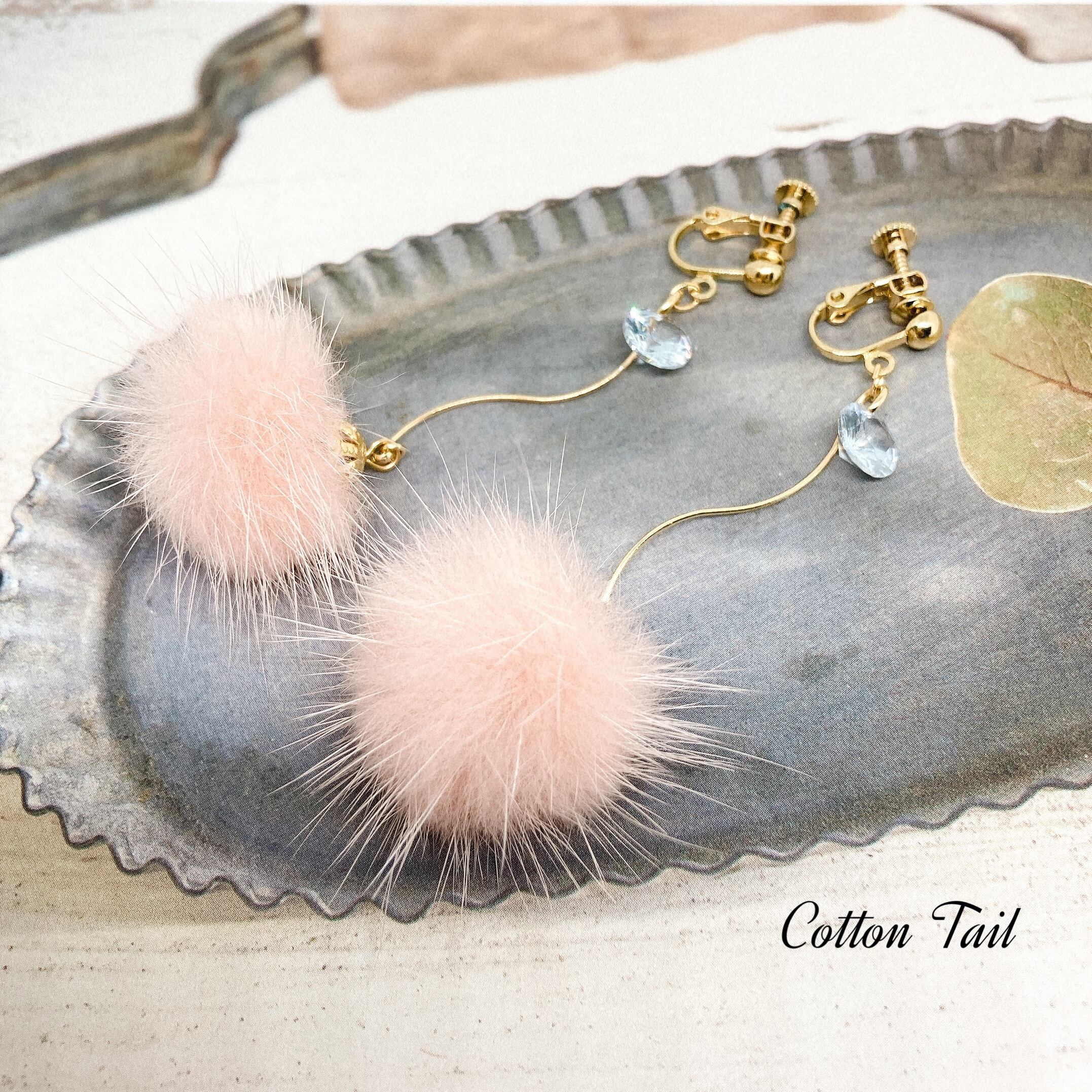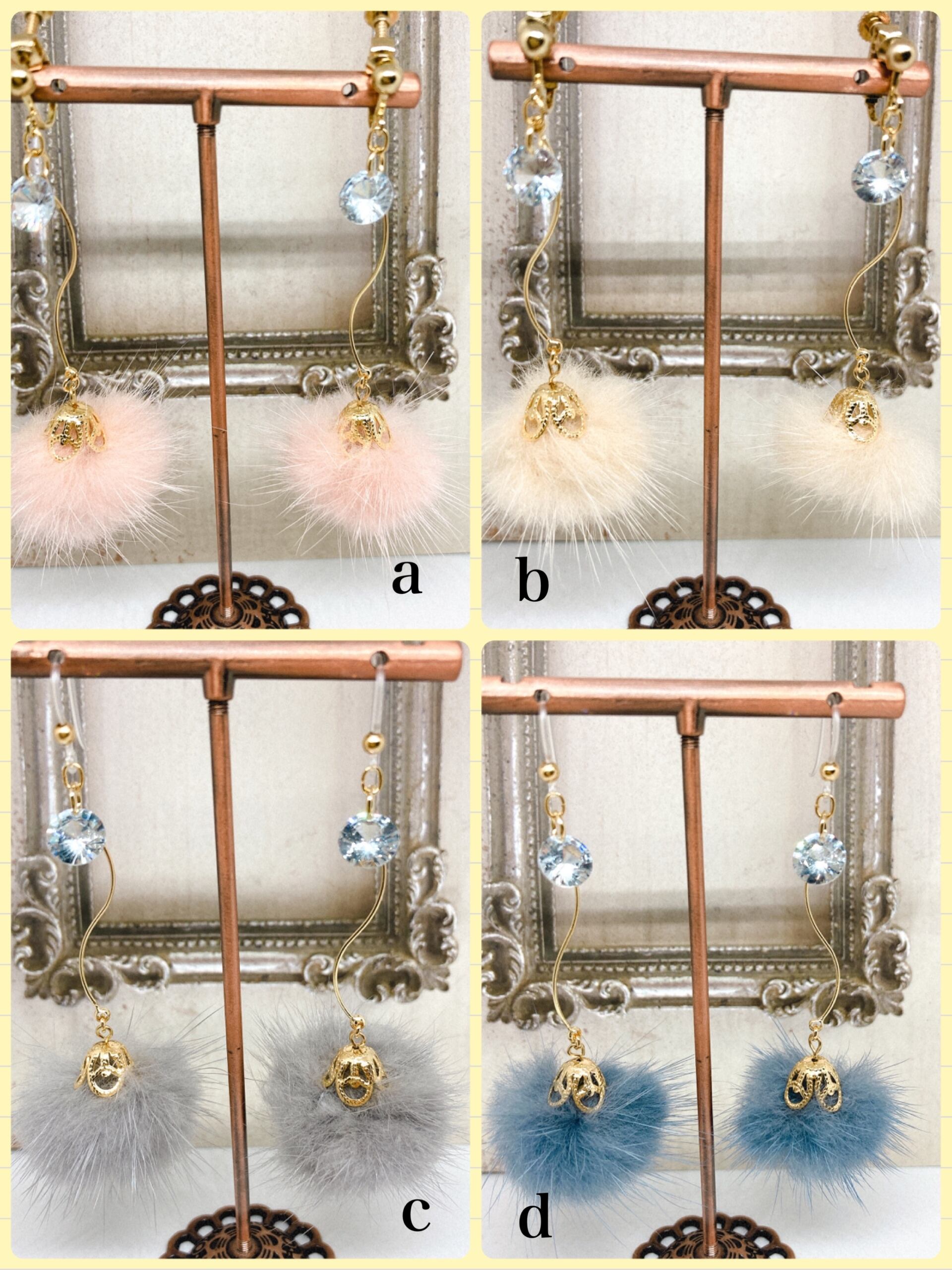 こちらの作品は、ミンクファーにタッセルカバーを付けミンクファータッセルにした物をイヤリングに仕上げました。