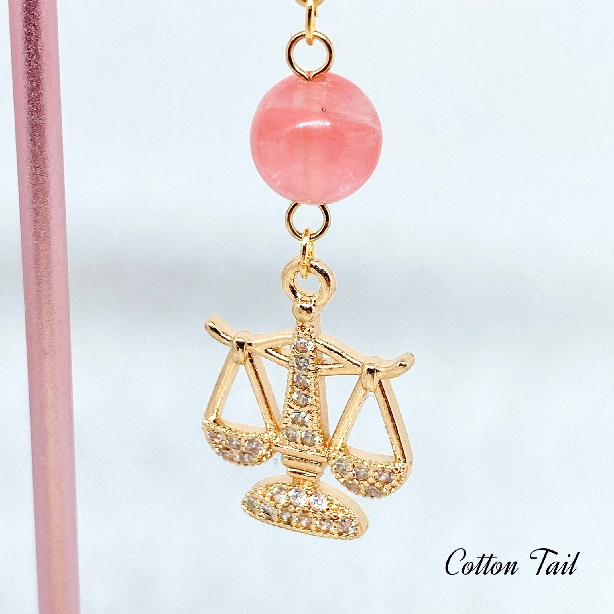 こちらは、18KGPの豪華ビジュー天秤チャームを使ったイヤリングになります。