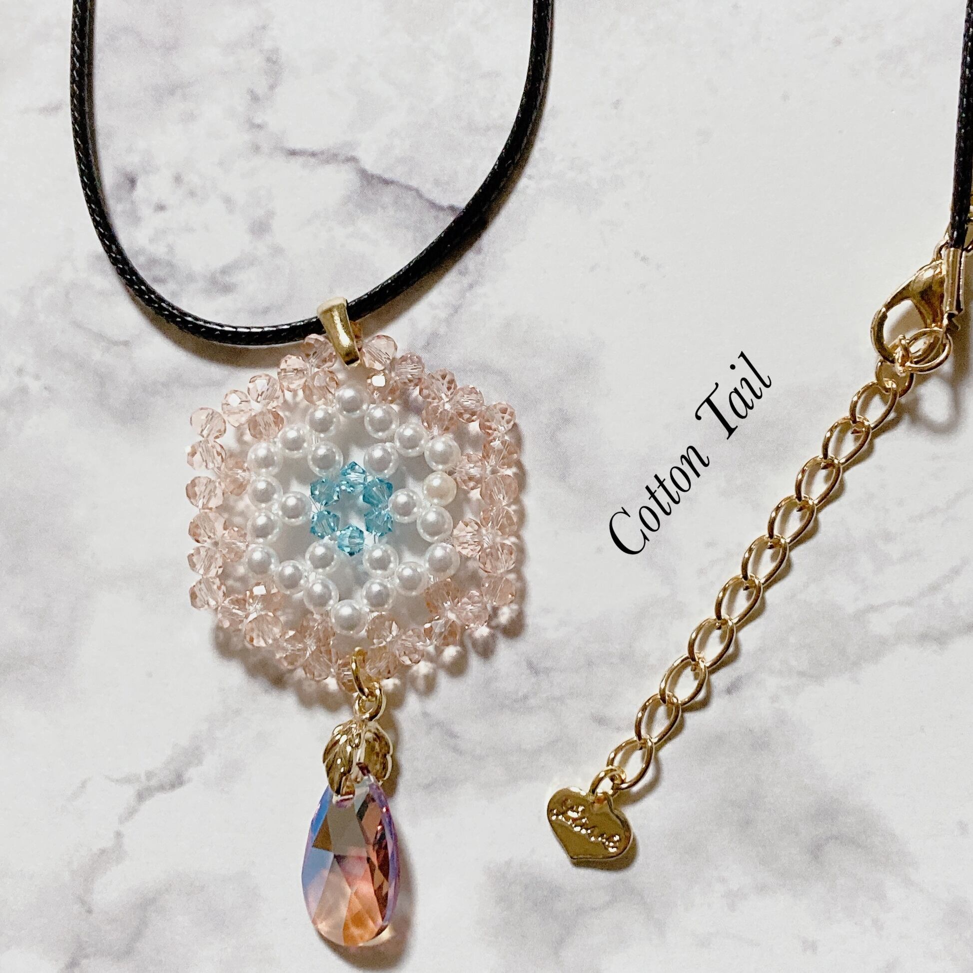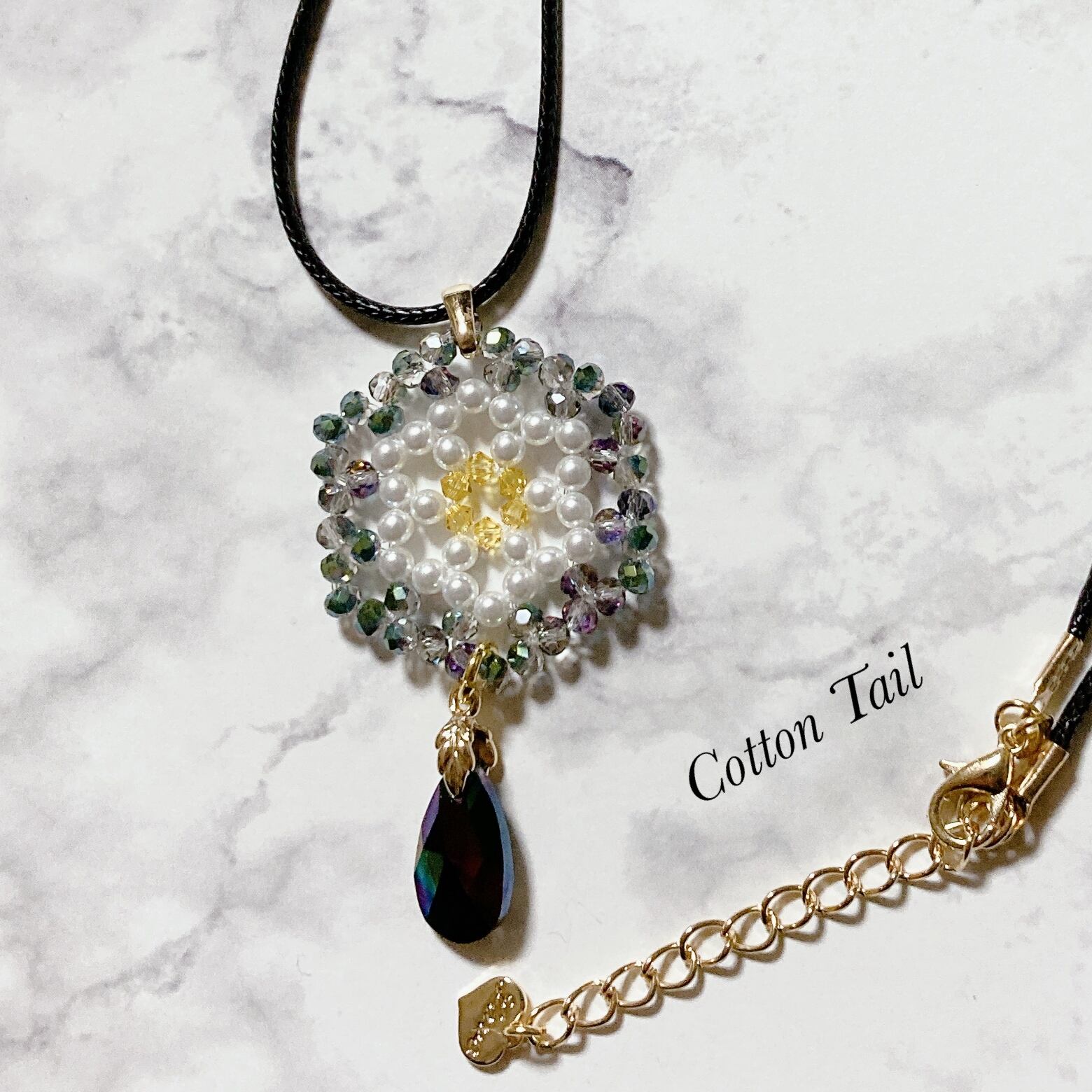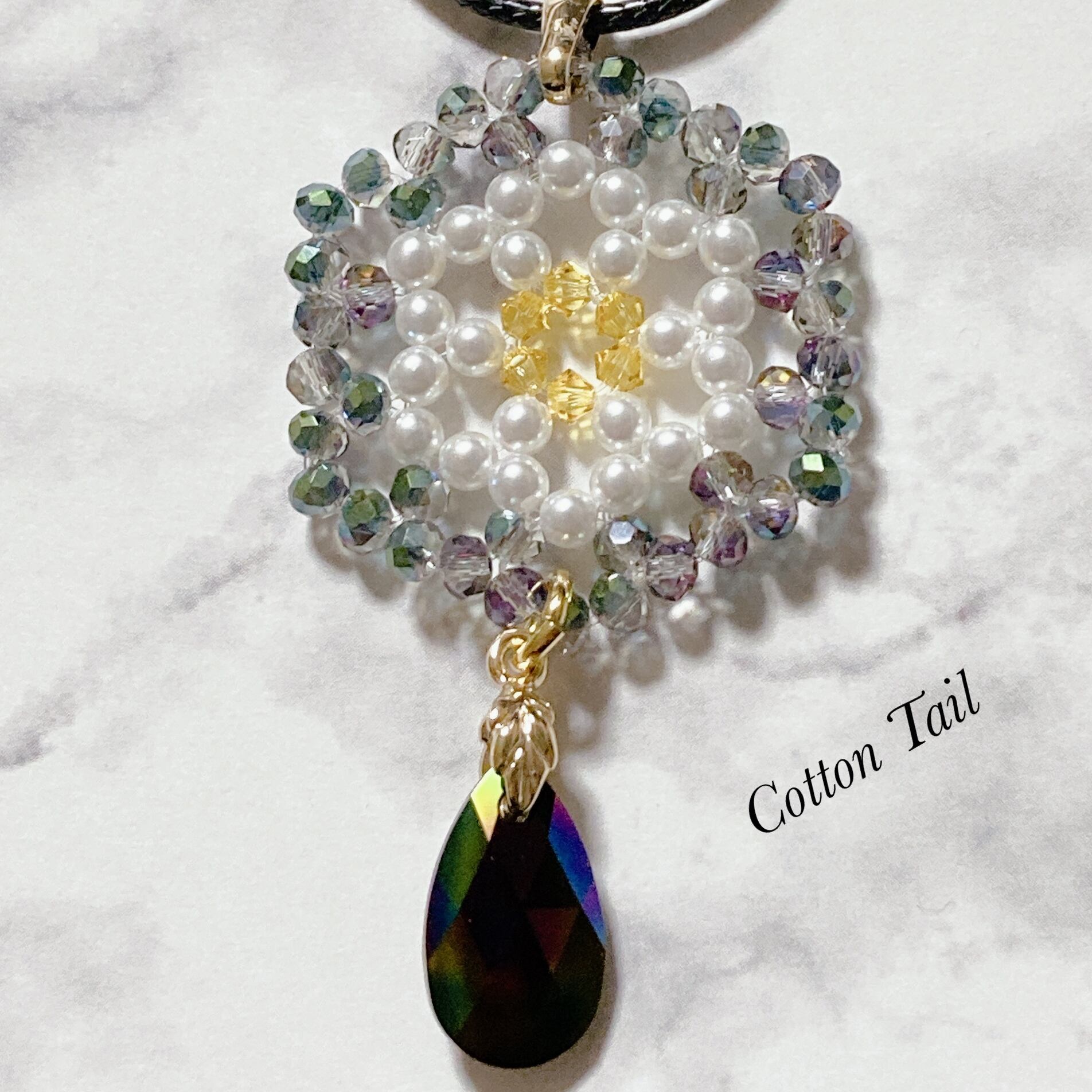 ビーズ編みとスワロフスキートップのネックレス
