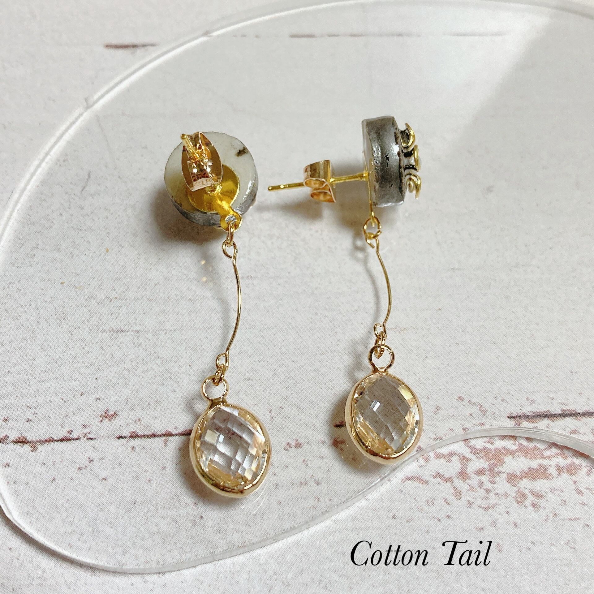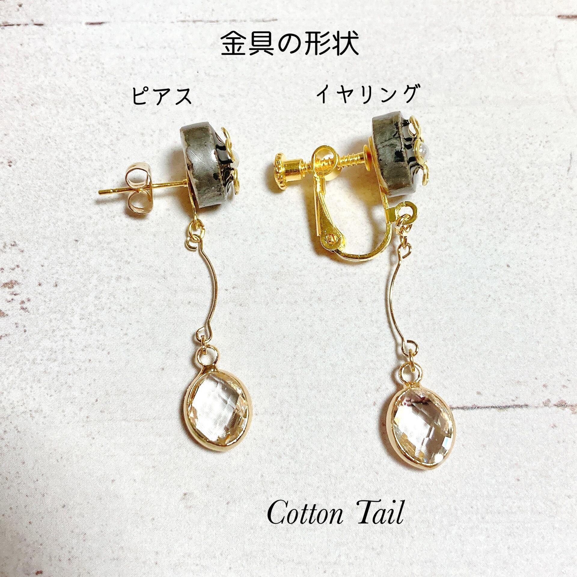下にはキラキラ輝くガラスストーンチャームを合わせました。